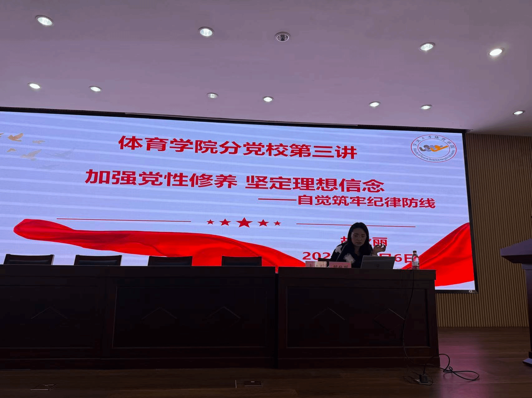 胡老师从什么是党的纪律讲起,她着重强调了三个关键方面:第一,党的纪律是完成党的任务的保证。第二党的纪律具有强制性。第三,知党的纪律包括政治纪律、组织纪律、廉洁纪律、群众纪律、工作纪律和生活纪律。