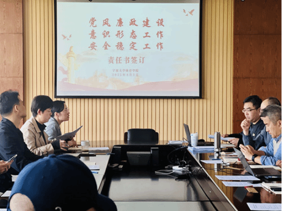 会上,学院与各内设机构主要负责人现场签署了2025年度《党风廉政建设责任书》《落实意识形态工作责任制责任书》《安全稳定工作目标管理责任书》。