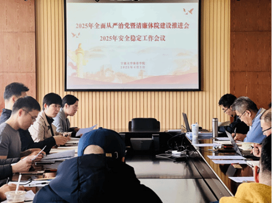 2025年全面从严治党工作暨清廉宁大建设推进会、校园安全稳定工作会议精神。童莹娟就学院2025年党风廉政建设与安全稳定工作进行了部署,胡秋丽通报了上年度纪委工作情况。