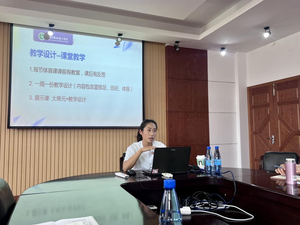 钱丹丹老师回顾了任职体育教师岗位后的工作经历,给予了同学们很多忠告。她认为在体育教学当中,教师一定要树立起榜样作用。无论是教学竞赛、课堂教学还是学校体育等各种层面来说,切勿躺平,要勇于去挑战新事物,督促自己努力自我更新,练就一身好本领。