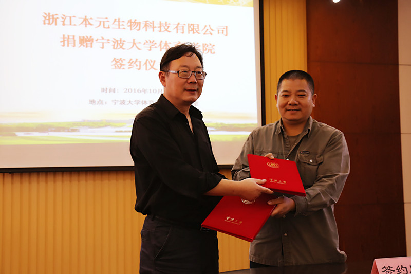 捐赠仪式上,执行院长郑建岳代表学院对徐晖校友和浙江本元生物科技有限公司表示衷心感谢和诚挚敬意,并介绍了学院的发展情况。浙江本元生物科技有限公司董事长徐晖先生表示,作为原宁师院体育系87级学生能够为免费黄色直播
