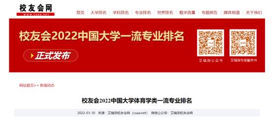 2022年3月30日,据全国第三方大学评价机构艾瑞深校友会网(Cuaa.Net)最新发布的校友会2022中国大学一流专业排名、2022中国大学各专业类一流专业排名榜单,免费黄色直播 体育教育专业获评A+,在“体育教育专业排名(研究型)”中排名前列。