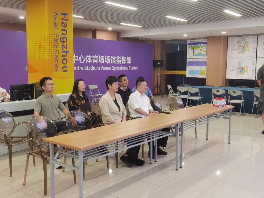 顾耀东一行实地参观了黄龙体育中心体育场、指挥中心等地,详细了解各场馆的智慧化设备运行、各项业务开展等情况。