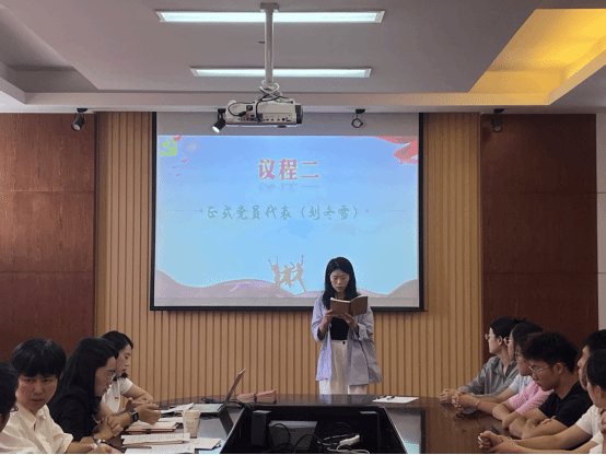 活动在雄壮的《国歌》中拉开帷幕。全体党员肃立齐唱,激昂的旋律点燃了现场的红色激情。随后,预备党员代表夏鑫莲结合体育专业特色,号召青年党员以“使命在肩、奋斗有我”的精神,在训练场、赛场和人生赛道上争创佳绩。正式党员代表刘冬雪则分享了作为党员在学业科研、志愿服务中的先锋实践,引发全场共鸣。