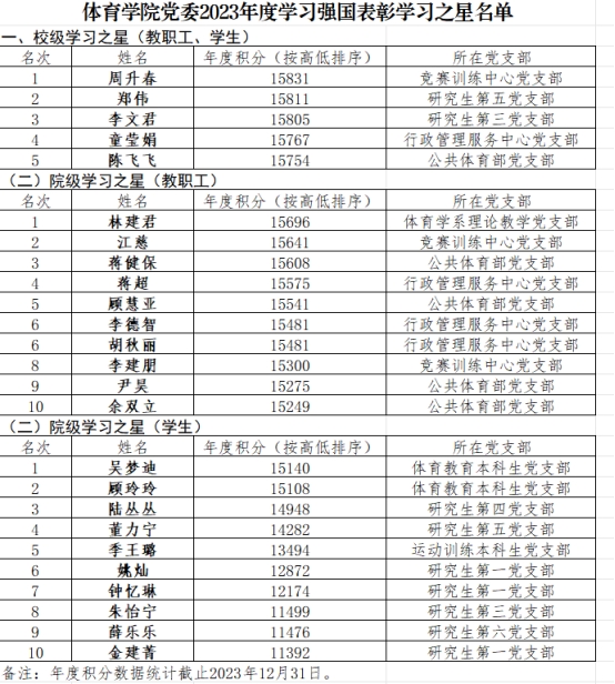 根据学校关于开展“学习强国”年度表彰工作的通知精神,经学院党委审核、研究决定,现评选出2023年度“学习强国”学习之星25名,具体名单公布如下。